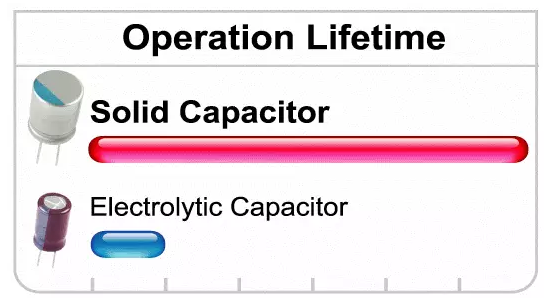 新時代的固態電容采用具有高導電度及優異熱穩定性之導電高分子材料作為固態電解質,代替傳統式鋁電解電容器內的電解液,大幅改善傳統液態鋁電解電容器之缺點并展現出極為優異的電器特性與可靠度,導電性高分子鋁固態電解容器已成為下一時代固態電解電容器的開發主流,導電性高分子固態電容器也成為尖端先進的電容器代名詞。