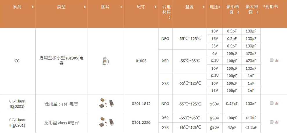 常用國巨電容規(guī)格材質(zhì)、溫度、電壓參數(shù):