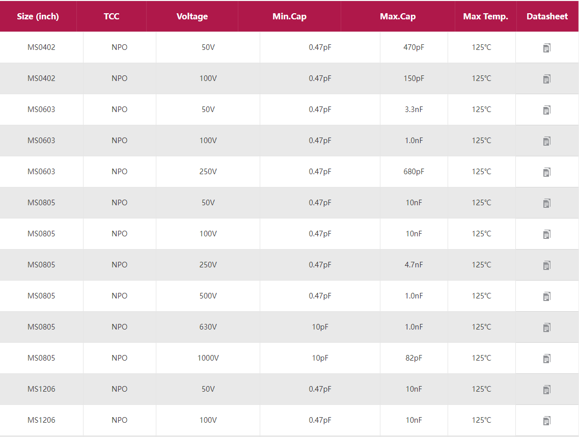 信維軟端子電容 產(chǎn)品型號(hào):0201 0402 0603 0805 1206 1210